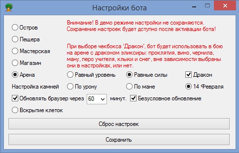 - Теперь в демо версии настройки не сохраняются.