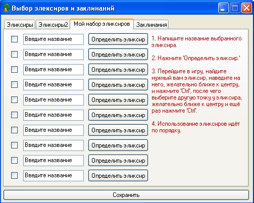 - По многочисленным просьбам добавлен "Мой набор эликсиров", теперь вы сами можете добавлять нужные эликсиры для использования в бою.