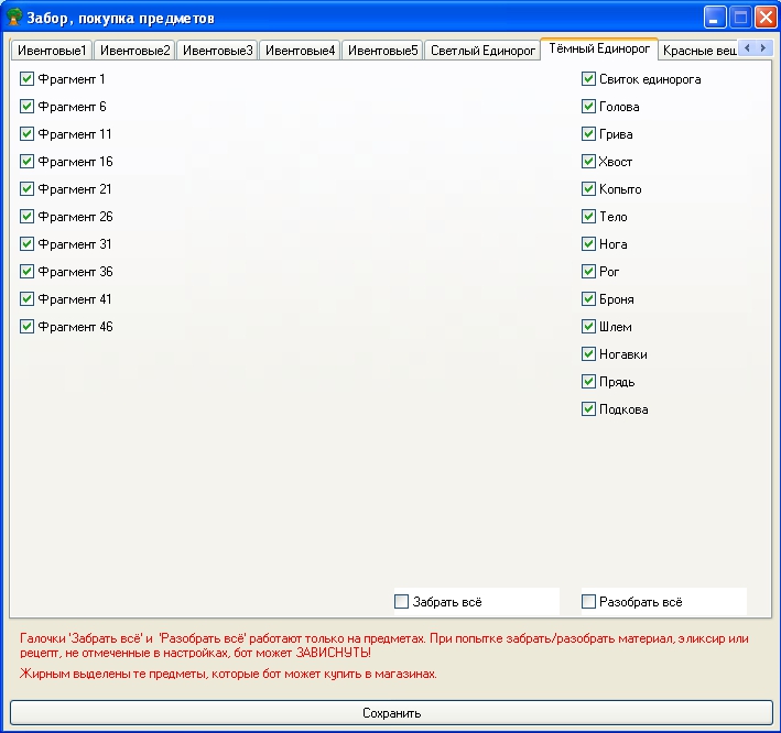 - Добавлен забор вещей и фрагментов с островного и пещерного Тёмного Единорога.