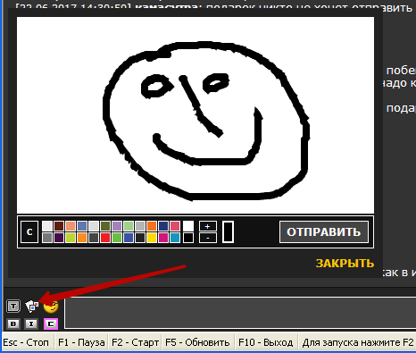 2. Рисуем картинку на тему лета средствами встроенного рисовальщика в чате и нажимаем отправить.
