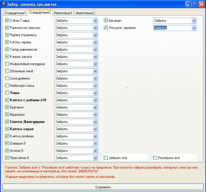 - Исправлены ошибки с забором ингредиентов (облачный лимб, сила древних, мифриловый нагрудник) и других предметов.